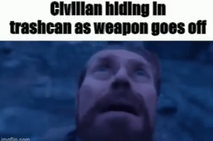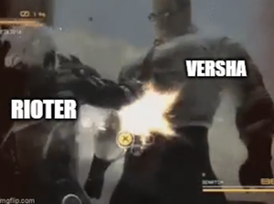The city streets were carnage with people dressed in red and black firing makeshift weapons, some looting buildings and others attacking civilians. Some of them were setting fire to the area, including corpses and buildings, the fires giving an ominous red glow to the area. Za took out the first one with a single shot, and R'kikki managed a second soon afterwards. The rioters retaliated, shooting at the group and one bringing out a makeshift flamethrower to attack Versha, Vylan and R'kikki. After a short but nasty fight, the group managed to take out the rioters, Versha sticking to non-lethal force. Vylan finished the last two off by using the Force and slamming them into each other, which interested some members of the group.