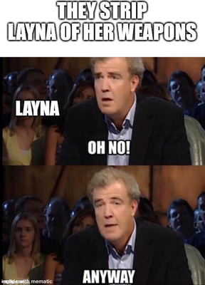 Layna went to find Versha who was feeling pretty miserable after being unable to convince Sobol to help them. She convinced her that she was a good part of the team with experience being more valuable than a job title and a qualification and did her best to persuade her that she wasn't responsible for R'kikki's death, and she also shared some responsibility.