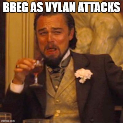 +2 to R'kikki for bomb shenanigans and planning for the next battle, with the bomb being the turning point of the session, bombs rule the world; +1 to Vylan for R'kkiki paying a tithe to Vylan, wink wink, nudge nudge.