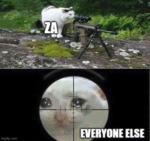 +3 to Za for dominating combat with friggin' massive crits, for the win, as well as a baller finishing shot; +2 to Versha for taking the explosion like a boss, and taking one for the team in general.