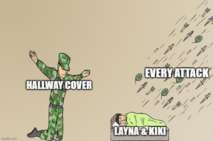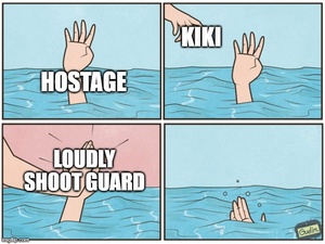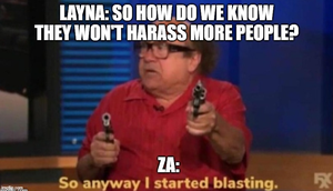 Regicide's group immediately surrounded them, asking Za if he knew anything about the situation. He denied it. Similarly, Regicide denied all knowledge of knowing that Layna was the contact for negotiations.