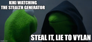 Vylan and Rein went off in search of the jammer, tracing it to a sentient crate that called itself Roy. Roy challenged Vylan with some riddles, with Vylan tricking Roy into giving it some basic information about its creator and asking Leon to use the details to find the answers to the riddles. With the right answers, Vylan was able to disable the jammer and took the crate with him.